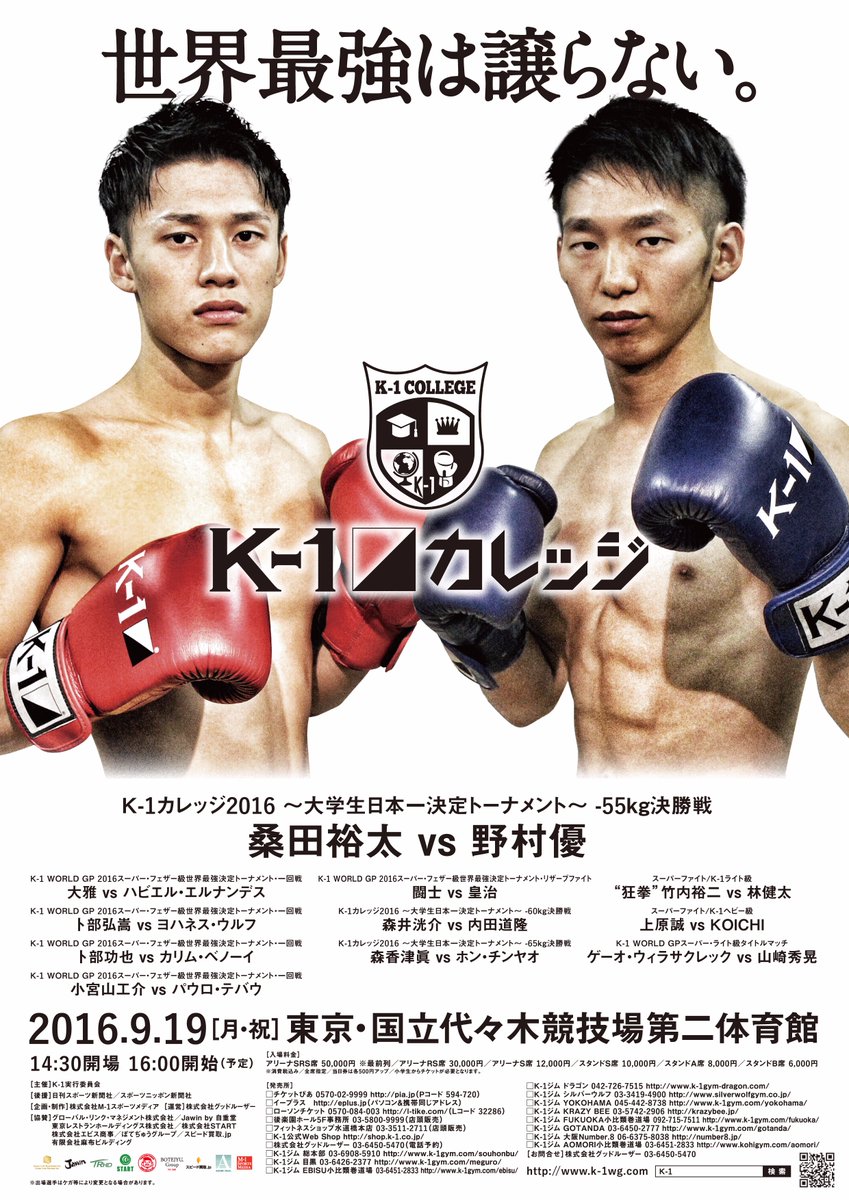 K-1大学生チャンピオンの桑田裕太くん(サービス創造学部4年)が28日ユニバーシティアワーで勝利凱旋報告! 「サービス創造学部」学部長の吉田優治です。 先週末、K-1初代大学生チャンピオンを勝ち取った桑田裕太くん(サービス創造学部4年)が、9月28日(水)3時間目のユニバーシティアワーの冒頭で勝利凱旋報告の予定です。 当日のユニバーシティアワーはサービス創造学部の担当回です。その凱旋報告に後、嶋津健一さんのJazz Piano、そしてKAZUMA TAKAHASHIのDJが予定されています。テーマは「音楽を創る」です。