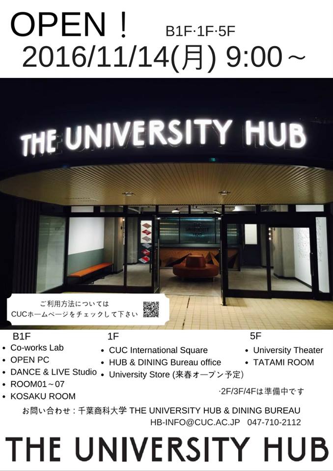 「The University HUB」オープン、11月14日(月)9:00 !
