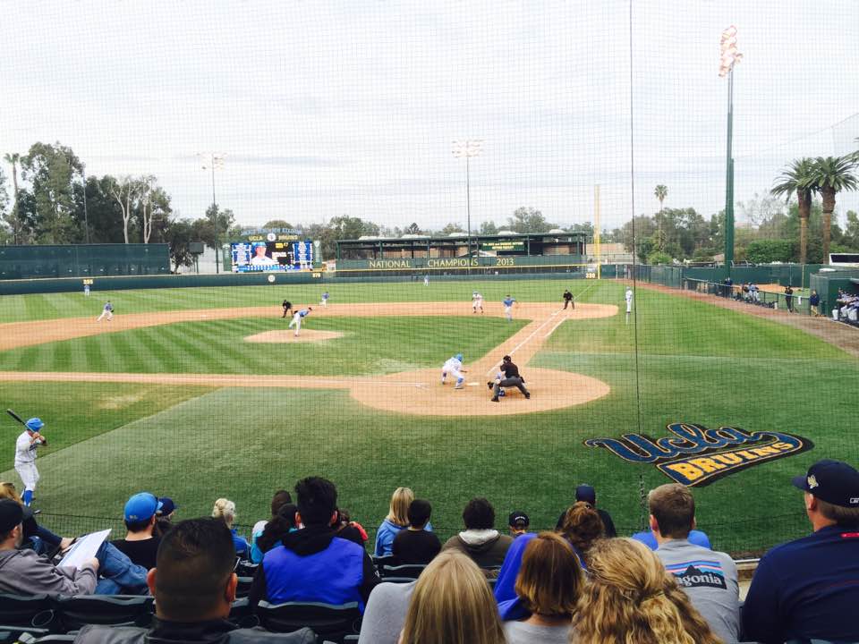 UCLA 対 UCSDの試合。大学キャンパス内にこの野球場。バスケットボールに比べると人気は今ひとつ。2013年に全米チャンピオン。